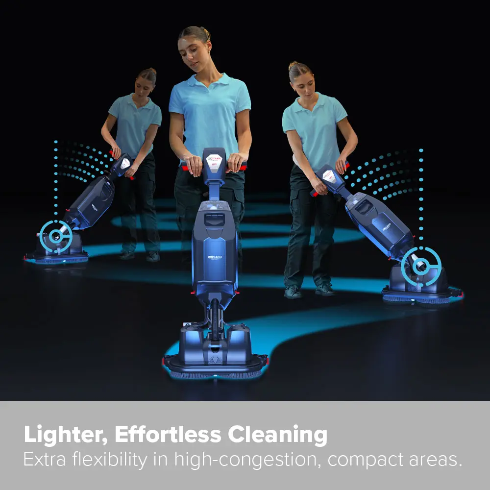 Manuseamento 25% mais leve e flexibilidade extra em áreas compactas com muito tráfego e difíceis de limpar.